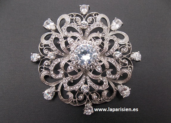 Broche de color plata con cristales de alta calidad. Acabado rodio. Mide 8×8 cm. IVA y portes incluidos.