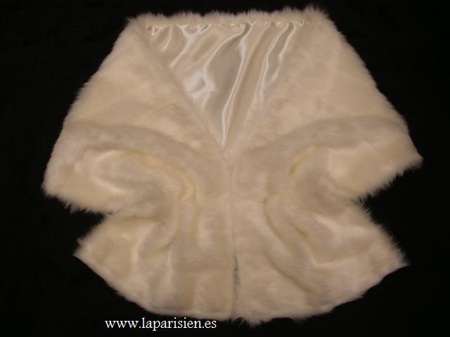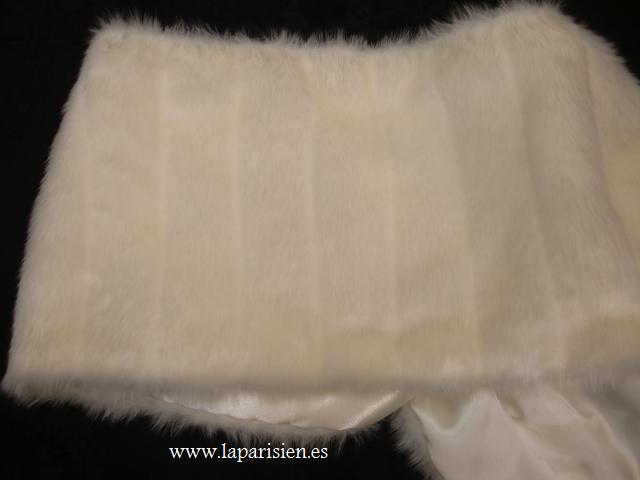 Imitación al visón, blanco roto, 150×30 cm, con cierre, puntas cuadradas.