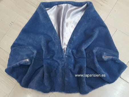 Estola ancha de Imitación mutón azul. 150x50 cm, con cierre.Estola ancha