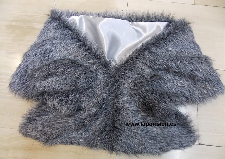 Estola estrecha de 150x30cm, piel negra con mecha blanca, incluye cierre (efecto color gris).Estola estrecha