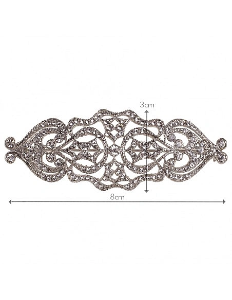 Broche fabricado con cristal de primera calidad que lo convierte en una delicada joya de alta bisuterÃa. Una pieza elegante y versátil, perfecta para realzar vestidos de fiesta, looks de novia o mantillas de Semana Santa.