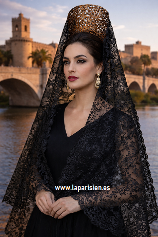 Esta mantilla negra es un accesorio esencial para eventos solemnes como la Semana Santa, ceremonias de madrina y otros eventos festivos. Su diseño intrincado y elegante, con patrones florales, aporta un aire de sofisticación y reverencia. Durante la Semana Santa, esta mantilla complementa perfectamente los vestidos adecuados para la ocasión, simbolizando respeto y devoción. Para las madrinas, es una opción ideal que realza su atuendo, añadiendo un toque de distinción en momentos tan significativos.