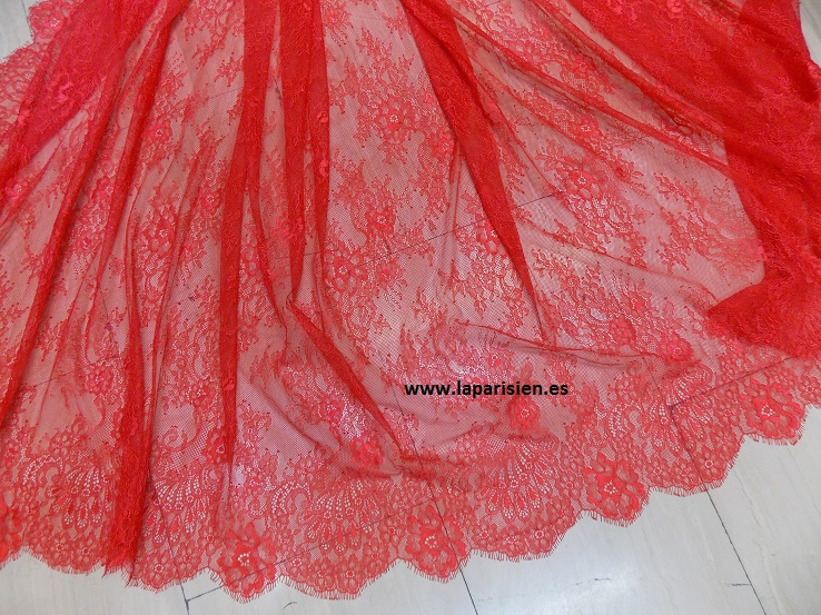 Roja, 1,50×2,20 mts. Dentelle de Calais (Chantilly). Muy ligera (ideal para mantilla y echarpe).