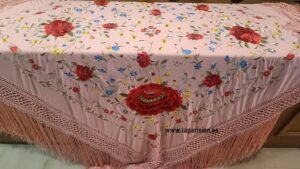 El mantón de Manila es una prenda tradicional española de origen filipino. Confeccionado en seda o lana, presenta bordados exquisitos en hilos de oro y plata. Se caracteriza por sus colores vibrantes y diseños florales o geométricos. Es un sÃmbolo de elegancia y distinción, utilizado en eventos especiales y bailes tradicionales.