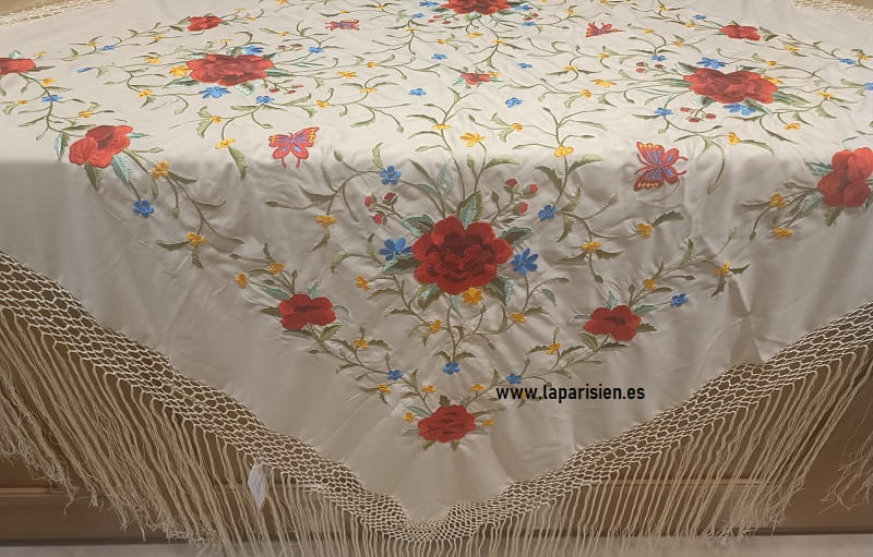 Manton de manila mediano de la parisien con flores rojasMANTON DE MANILA MEDIANO