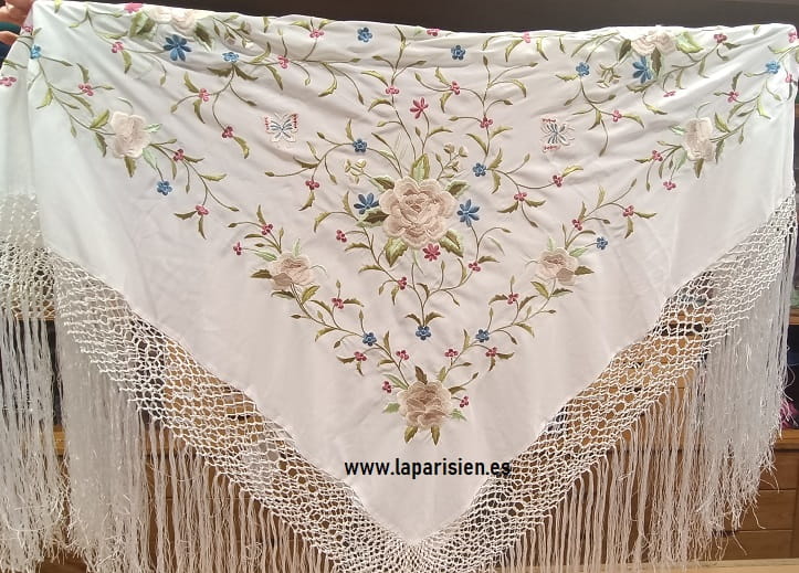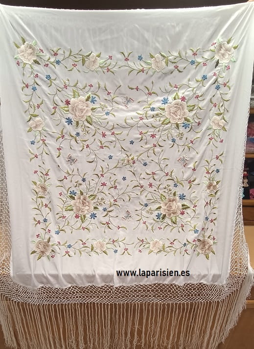 Manton mediano blanco con flores pequeñas de coloresMANTON DE MANILA MEDIANO