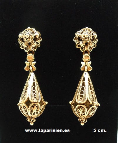 Juego de pendientes de bisutería. Color dorado viejo, 6 cm largo.Juego pendientes bisutería