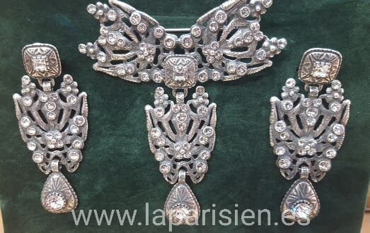 Bisutería color plata. Largo max broche:9 cm. Largo max pendientes: 6,5 cm. IVA y portes de envío incluidos