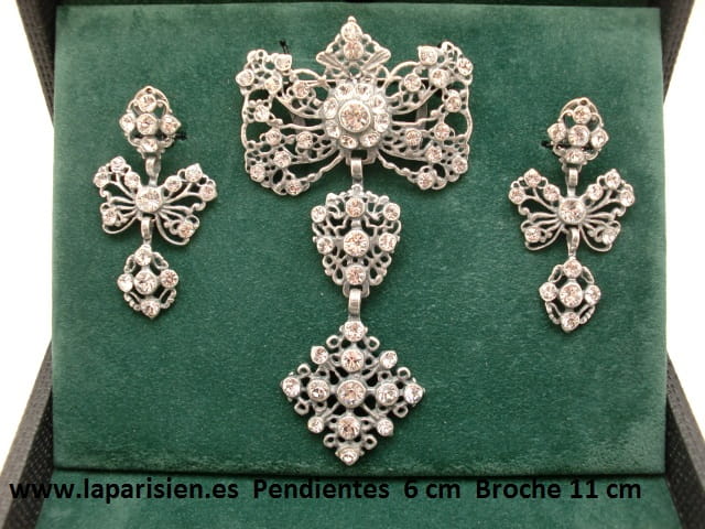 Juego de broche y pendientes de BisuterĂ­a color plata. Cierre Omega.Juego pendientes y broche