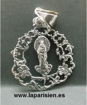 Medalla de la virgen del pilar. Bisutería. Color plata. 3 centímetros.Medalla Virgen del Pilar