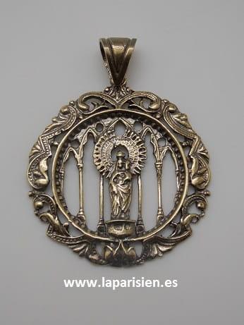 Medalla dorada de la virgen del pilar. 4 cm, bisutería doradaMedalla Virgen del Pilar. Dorada