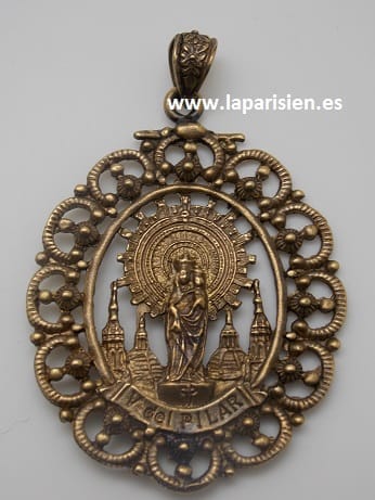 Medalla del pilar dorada de 6 cm, bisutería dorada,Medalla Virgen del Pilar. Dorada