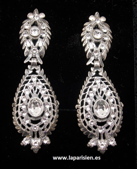 Pendientes indumentaria tradicional, bisutería, color plata, 7 cm de largo, cierre omega,Pendientes indumentaria tradicional