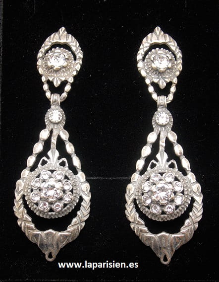 Pendientes tradicionales regionales de Bisutería, color plata, 7,5 cm de largo, cierre omegaPendientes indumentaria tradicional