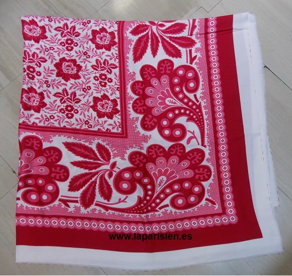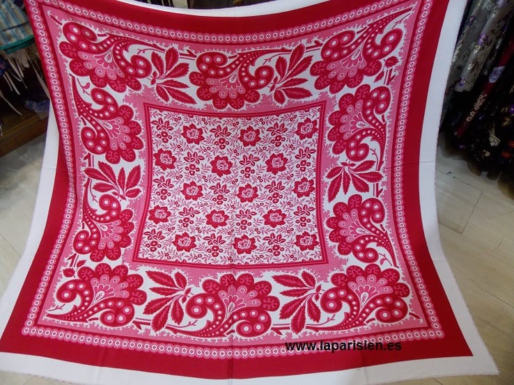 Mantón de merino color sandía, 140x140 cm. Fibrana 100%Mantón de merino (fibrana)